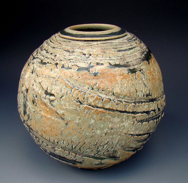 Maguire's work is spawned from the potter's wheel but her manipulation of the clay body is unique and unexpected. Often, the surfaces are gouged, tooled or burnt to become as natural as the day they were born of the earth. With respect for their origins, she has returned them to rough-hewn surfaces unlike those we usually associate with objects thrown on the wheel. The glazes and underglazes are as original and nuanced as Nature herself.